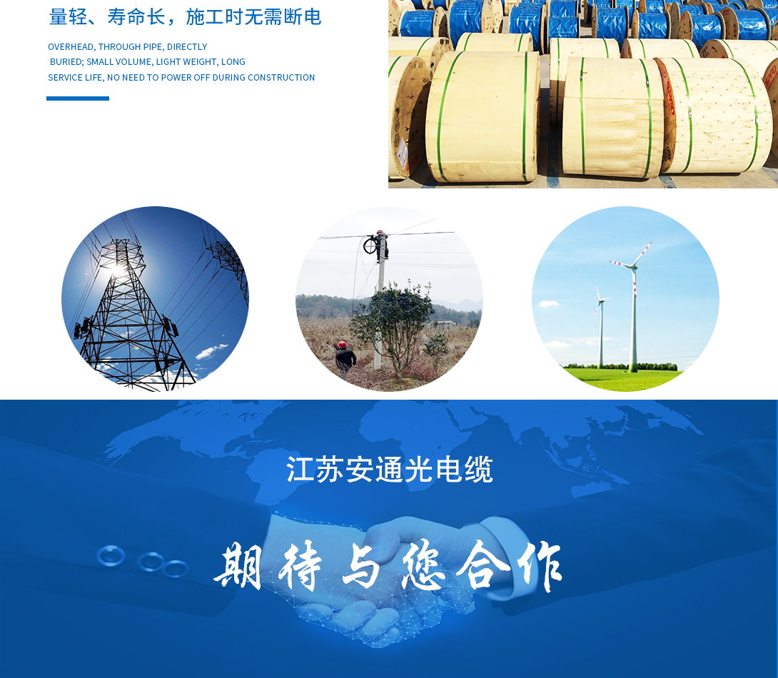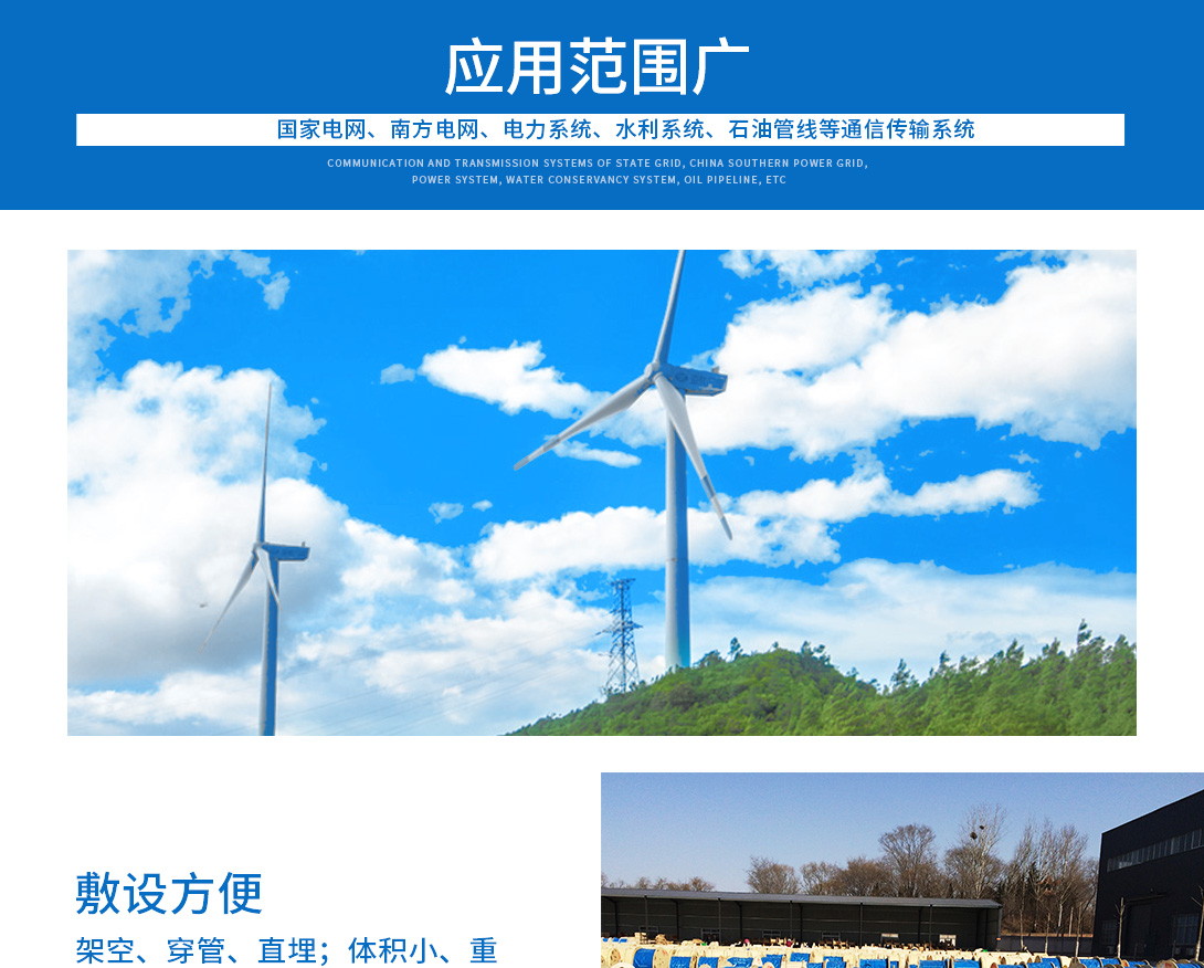 3、防電腐蝕性能好,全介質(zhì)的光纜結(jié)構(gòu)有利于安裝和維護,可以不停電施工,電力故障不影響光纜的正常傳輸;
